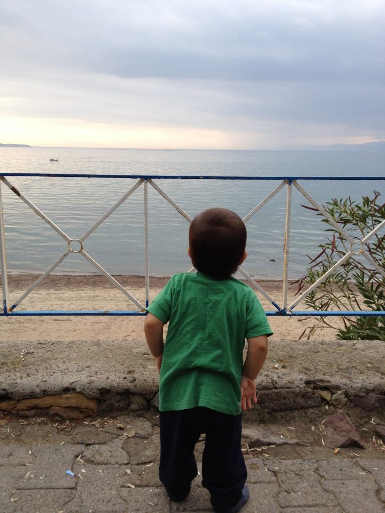 Elbette oyun salonunun dibinde oturup yemek yemesini bekleyemezdim. Biz yedik, o oyuna doydu. Ardından büyükler için mağazalara girdik, bakındık diyemem Alaz’ı zaptetmeye çalıştık genelde. Boyuna yakın ne varsa elliyor, askıdaki elbiseleri çekiştiriyordu. Bir ara 8-10 yaşlarındaki üç kızın yanına gitti. Kızlar ellerindeki bisküviden uzattılar, ağzını açtı bizimki. Sonra benim yanıma gelip gösterdi ağzında ne olduğunu. Ardından gene kızlara gidip bisküvi istedi. Mağazadan çıkarken kızlardan biri koşup yanımıza gelip Alaz’ın ağzına bir parça bisküvi daha soktu. Bu gördüğü ilgi sayesinde keyfine diyecek yoktu Alaz’ın. Sonra ananesinden top istedi, şu para atıp çeviriyorsun da top düşüyor ya. Elinden bırakmadı onu. Ayakkabı mağazasında çıldırdı, ‘apuka apuka’ diye. Ayakkabıları kucağına doldurdu. Tam eve dönmek üzereydik ki kaka yaptı. Bebek altı değiştirmek için yer vardı giriş katında, hemen oraya gittik. Keyifle şarkı söylüyordu biz altını temizlerken.
