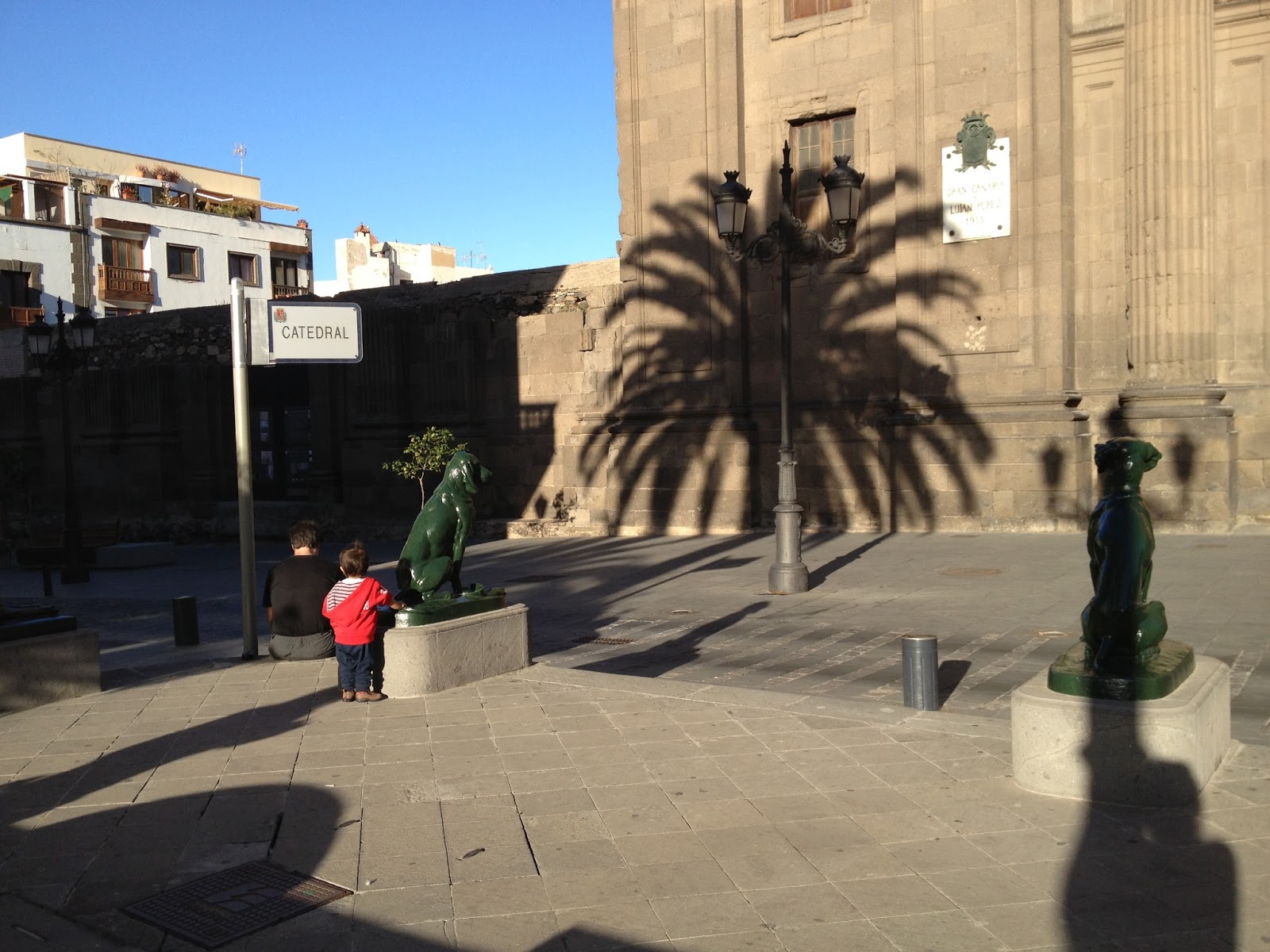 Tesadüfen, arabada GPS olmamasına rağmen yolumuzu bulduk başkent ve büyük şehir Las Palmas’ta. Deniz kıyısından uzanan iki şeritli geniş cadde bize Konak-Üçkuyular ve Bostancı-Maltepe sahil yollarını hatırlattı. Tabii en büyük fark, Las Palmas’da yanyana dizili palmiye ağaçlarıydı. Şansımıza Plaza de Santa Ana‘ya ve Christopher Columbus’ House yani Kristof Kolomb’un evine yakın bir sokağa arabayı parkettik. Uyuyan Alaz’ı pusetine yerleştirip tarihi meydana ve Katedral’e doğru ilerledik.