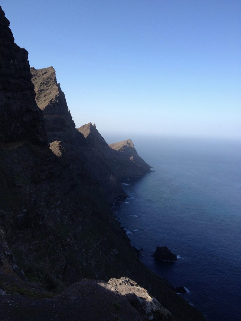 Önce dağ köyü olan Mogan’dan geçtik. Zaten ondan sonra keskin virajlar başladı. Kısa bir süre sonra 1000 metre yüksekliğe ulaşmıştık. Alaz çoktan uyumuştu arka koltukta. Benim midemde de kelebekler uçuşmaya başlamıştı. Dikkatimi yola vermek durumunda kaldım midem bulanmasın diye. Arada bir manzara izlemek için park yerleri vardı. Yaklaşık bir saat kıvrım kıvrım yollardan dağların arasından ilerledikten sonra kıyıya yaklaştık. El Hoyo’dan itibaren San Nicolas düzlükleri denize dek seralarla doluydu. Çoğunun içinde ne yetiştirildiği belli olmuyordu arabayla geçerken; ama bazısında muz ağaçları vardı. Londra’da Canary Wharf var Thames nehrinin şehre girdiği doğu kıyısında. Bölgenin adı Kanarya Adaları’ndan geliyor. Zamanında Kanarya Adaları’ndan gelen meyve ve sebzenin indirildiği bir limanmış şimdinin finans merkezi. İngiltere’de satın aldığımız muzların kaynağı San Nicolas bölgesindeki seralardı işte. Tam denize ve düzlüklere gelmişken yol gene dağların arasına saptı. Başladık virajları tırmanmaya tekrardan. Alaz uyanmış, bakınıyordu kendine gelmek için. Pek ilgilenmemeye çalışıyordum borçlu çıkmamak için. Kucak isteyecekti yoksa.