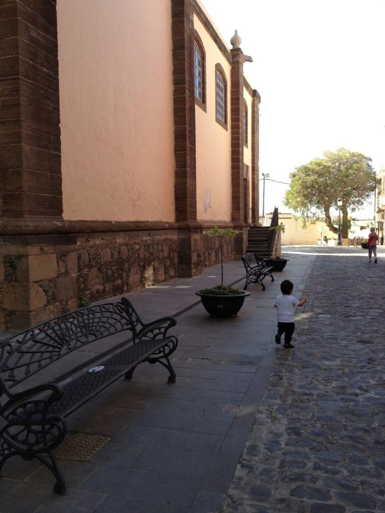 Müzeden çıkınca, karnımızı doyurmak için eski şehrin dar sokaklarında kafe aramaya koyulduk. Bize Havana‘yı anımsattı oralar. Alaz’ın yine yemek yemeyi reddetmesi dışında güzel bir mola oldu bize. Oldukça yorgundu ve huysuzluk çıkarıyordu. Arabayı park ettiğimiz otoparkta yerdeki çakıl taşlarıyla oynadı üstü başı toz olana dek. Ardından temizleyip arabaya oturttuk. Las Palmas yoluna çıkmadan uyumuştu.