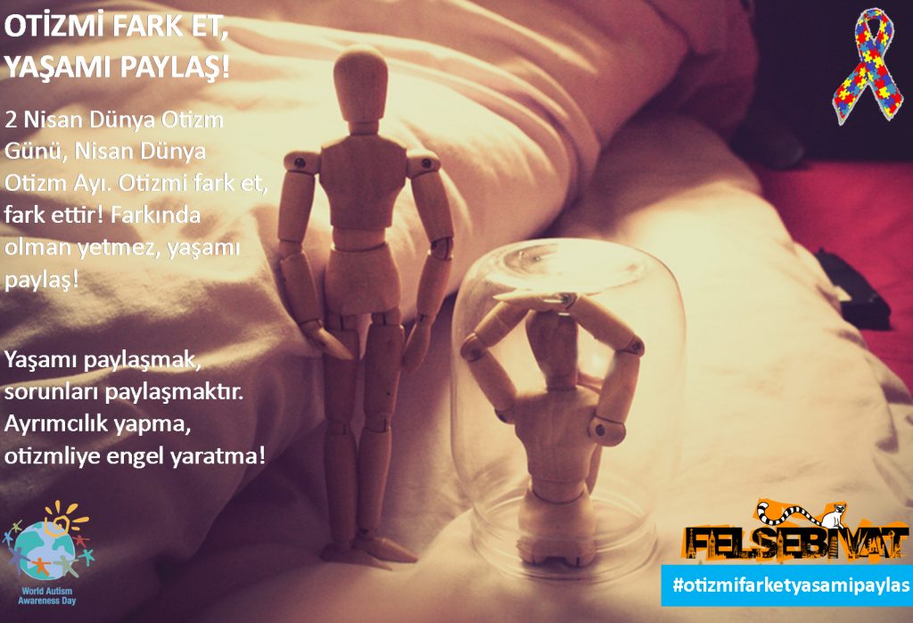 Otizmi fark et, fark ettir! Farkında olman yetmez, yaşamı paylaş! Yaşamı paylaşmak, sorunları paylaşmaktır. Ayrımcılık yapma, otizmliye engel yaratma!