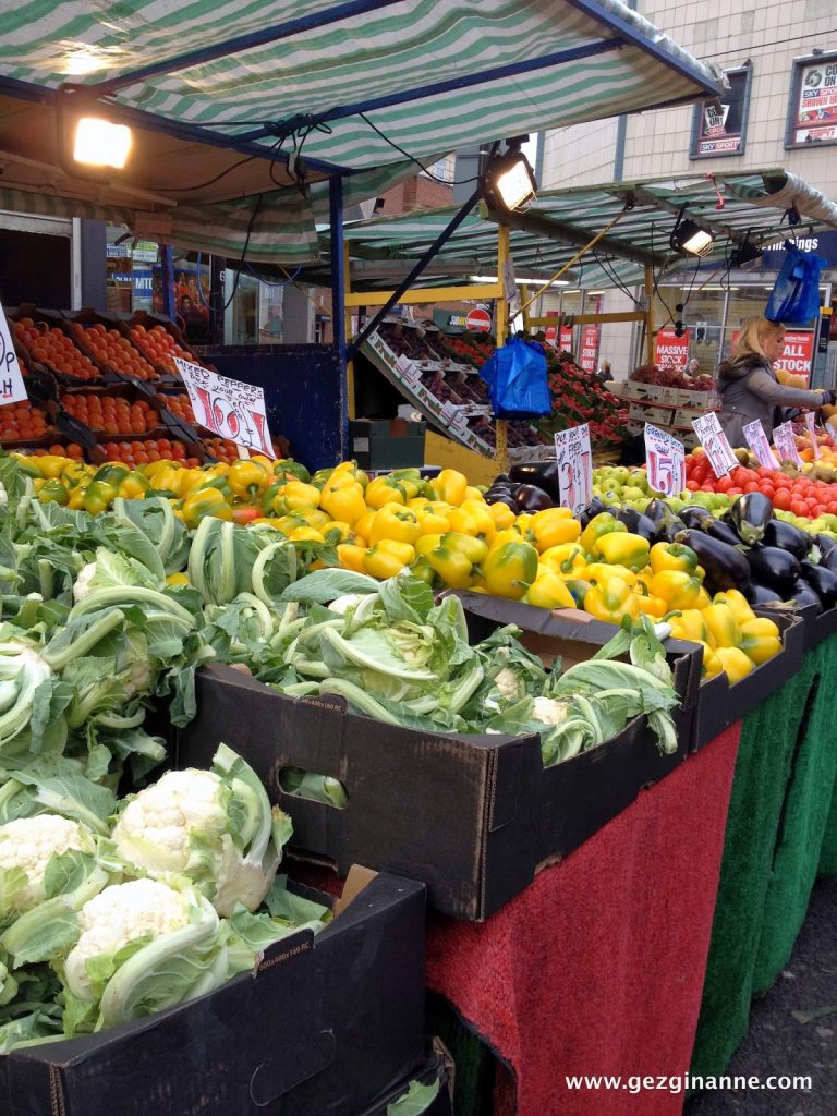 Londra’nın en çocuk dostu seçilen kafesine gittik. Croydon’da yolu kaybedince kendimi pazar yerinde buldum. Londra’da Türk usulü pazar bulmak her zaman mümkün değil. Alaz kafe diye pazara geldiğimizi görünce çok bozuldu tabii. Yanımda bebek arabası olmadığından taze sebze ve meyve alamadım; ama yerini öğrendim.