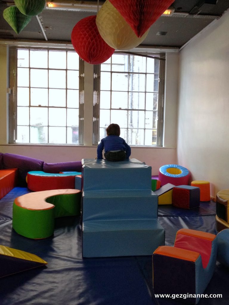 Üst katta, 2 yaş üzeri çocuklar için daha geniş bir yer var. Gene masa, sandalye ve koltuk takımları anneler için konulmuş. Çeşit çeşit oyuncak var. Asma katta bebekler için başka bir alan mevcut. En üst katta ise müzik, futbol gibi haftalık dersler var. Yemekler ve içecekler organik ve taze. Yiyecek fiyatları normal; fakat oyun salonunu kullanmak için 5 İngiliz sterlini ödedik.