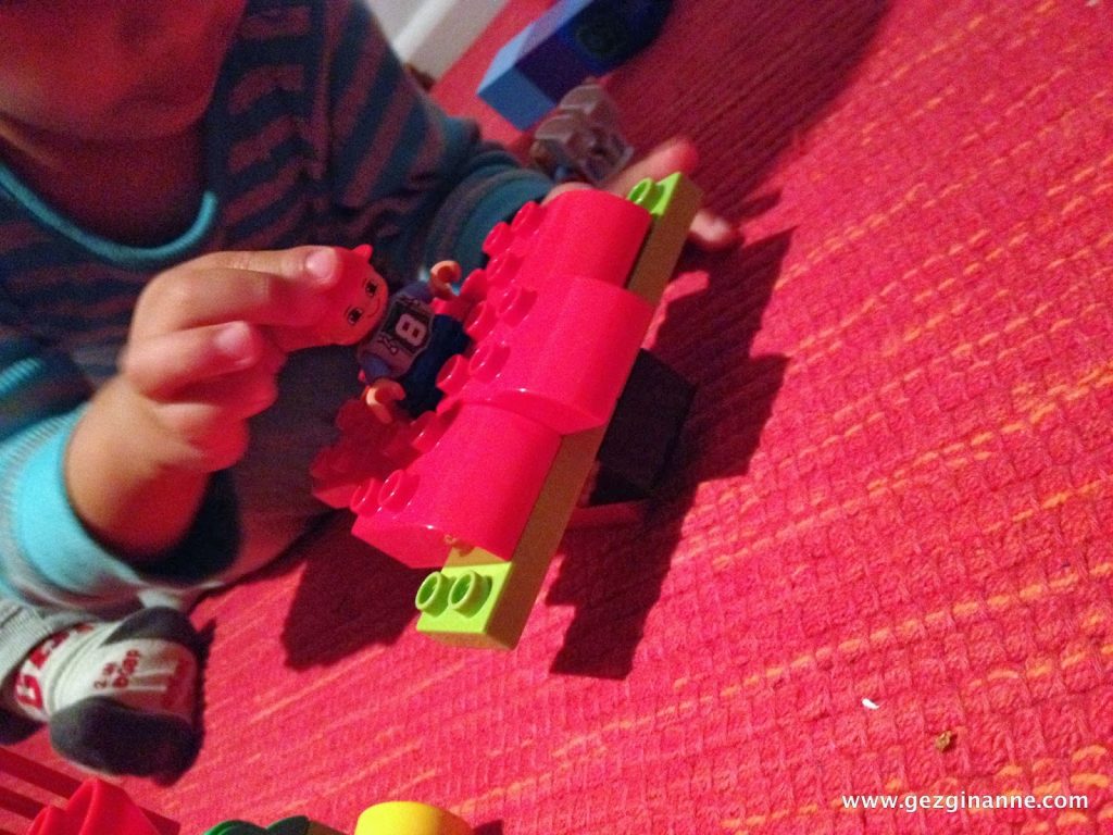 Bir akşam farkettik ki, Alaz kendi başına ilk kez legodan uçak yapmış. Legodan birçok sey yapıyor; ama bu tam bir uçak olmuş. Şaşırdık.